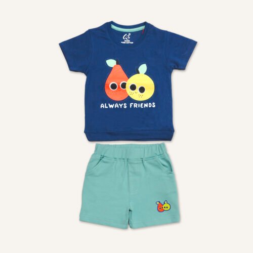 Kids Set Printed Crew Neck Snap-button(Mint Green)