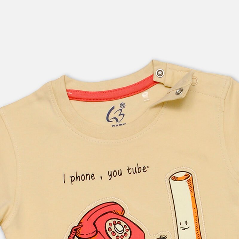 Kids Set Printed Crew Neck Snap-button(Coral)